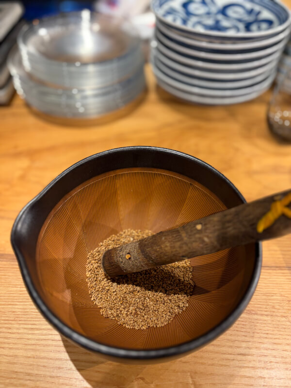 Grinding sesame seeds releases a wonderful aroma — please enjoy it!