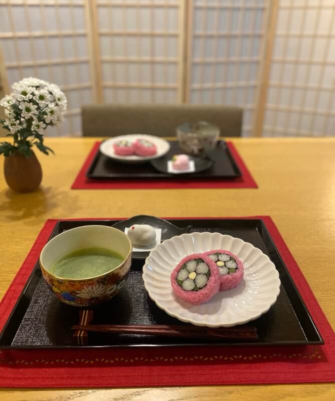 After making sushi, you will whisk your own matcha using traditional tools, and enjoy it with seasonal Japanese sweets (wagashi).