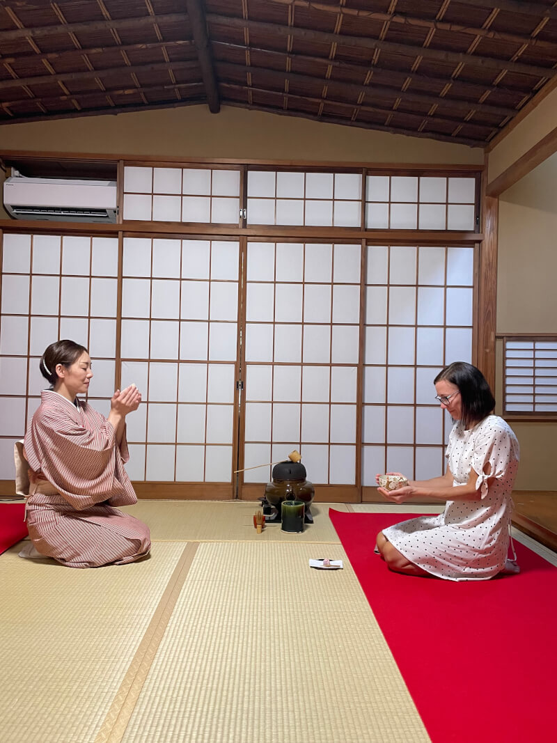 Welcome and seating in a traditional Japanese tatami room Brief greeting and self-introduction Introduction to the history and spirit of the Japanese tea ceremony Live temae demonstration (preparation of matcha)