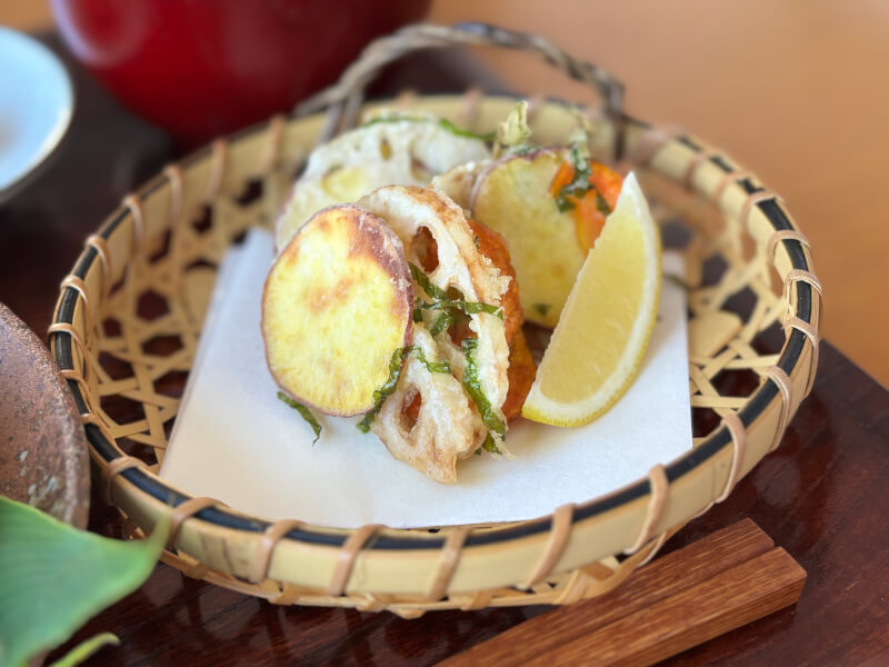 Next, we cook crispy kakiage tempura, a traditional Japanese dish made with vegetables. You will learn the tips to fry kakiage tempura light and tasty.