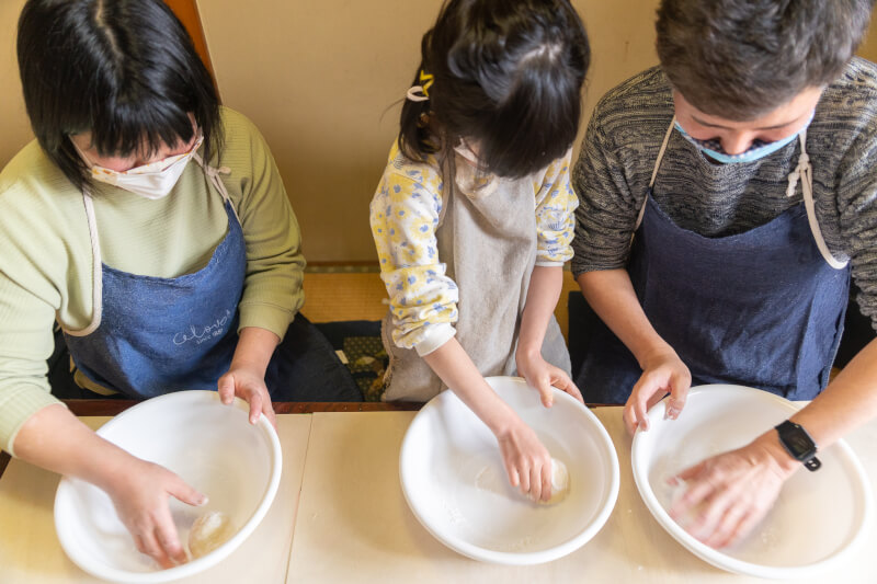 1. 本格麺作り: 機械を使わず、自分の手で生地を練り、のし棒で広げる本格的な職人体験です。