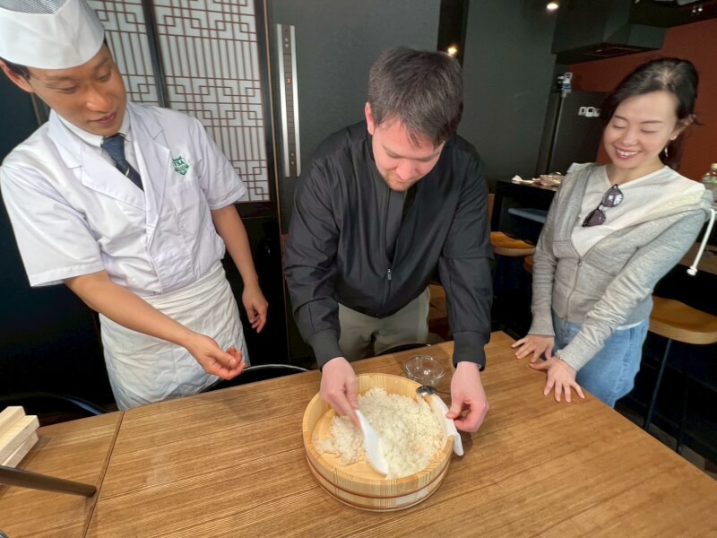 ★★★★★His sushi class was perfect and an extremely valuable experience. I plan to try making sushi myself after I return home.