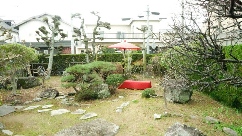Finally, enjoy a photo session in the garden with a traditional red umbrella.