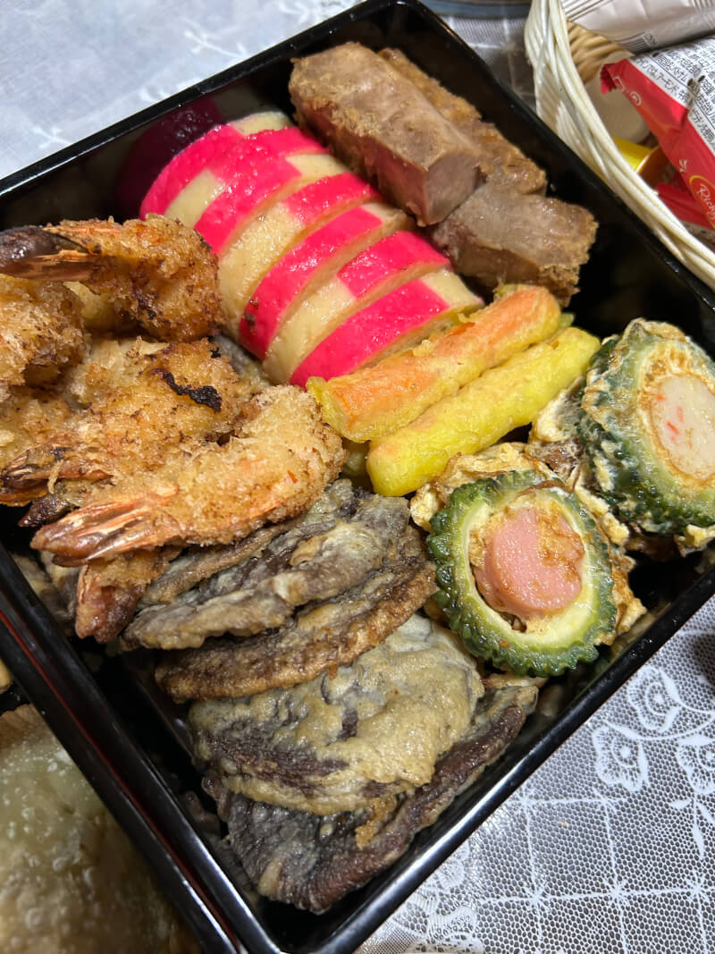 Sushi (Fun and easy sushi making experience) Simmered Dish (Okinawan-style home-cooked simmered vegetables and pork) Sata Andagi (Okinawan sweet deep-fried donut)
